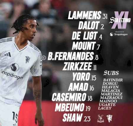 CONFIRMED: Manchester United Starting XI vs Crystal Palace