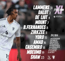 CONFIRMED: Manchester United Starting XI vs Crystal Palace