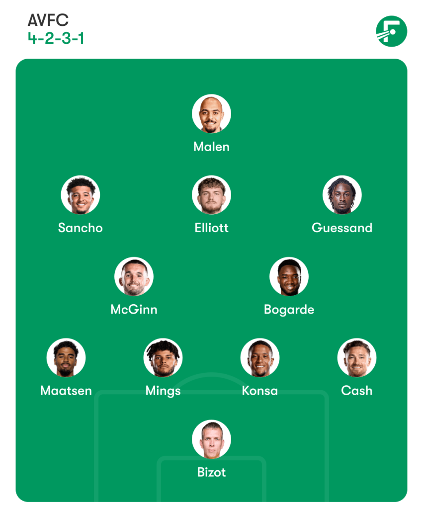 Andrés García is still out as far as we know, limiting Emery’s options at right-back too, but the manager has Victor Lindelöf on hand along with fellow deadline day signings Jadon Sancho and Harvey Elliott.