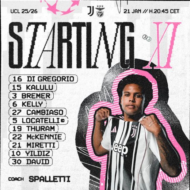 Juventus welcome Benfica to the Allianz Stadium for a crucial Champions League fixture as they aim to secure qualification for the next phase of the competition, and this is the starting eleven just announced.